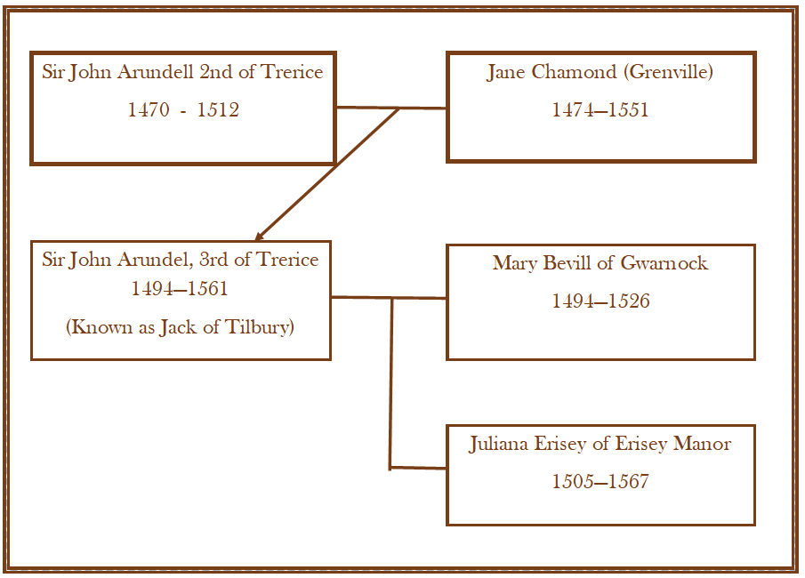 As with the Blanchminster family of Binhamy, Stratton, the Arundell family married into the wider aristocracy, including the Grenville family of Stowe, the Acland family (later of Bude) and the Carew family of south-east Cornwall.