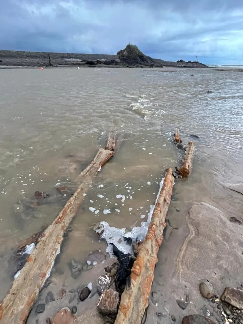 The breakwater may be seen as a principal piece in a wider project for the harbour. The breakwater protected the inner harbour and the town itself from the main thrust of the Atlantic waves. However, the course of the river had to be encouraged to flow towards the lock gates, which today it does. The idea being that the river flow will carry sand away from accumulating in front of the lock gates and along the river course, defined today by those warping posts.