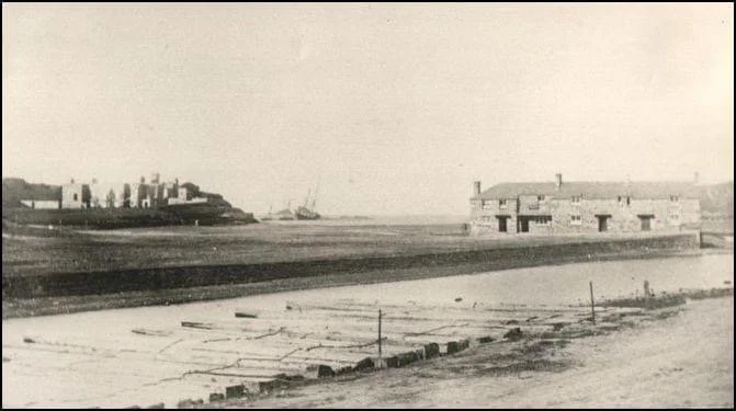 The river then heads its way out to sea with the warping post set to the left of its course. The warping posts you see in this picture were anchor points for ropes that were attached to the incoming vessel enabling the boats to winch themselves towards the lock gates. Small rowing boats, called Hobble boats, scuttled between the vessel and the posts, the Hobblers attaching the ropes as the vessel progressed in. It is also possible that the small boats may have carried the ships anchor forward to help the progress of the vessels before it could be attached to a warping post.